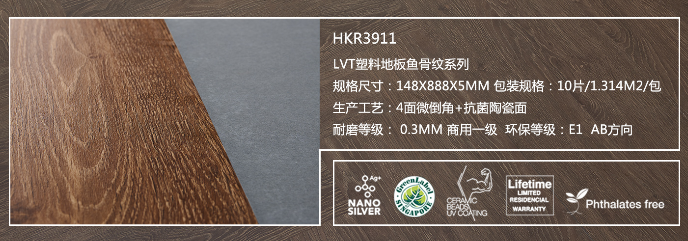 耐磨等級:0.3MM  商用一級  環保等級:E1 AB方向