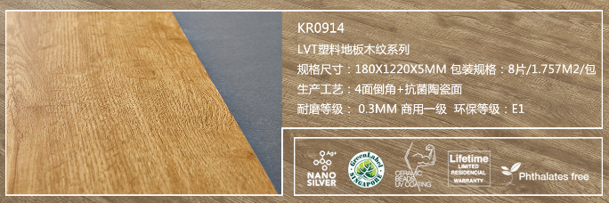 耐磨等級:0.3MM商用一級  環(huán)保等級:E1
